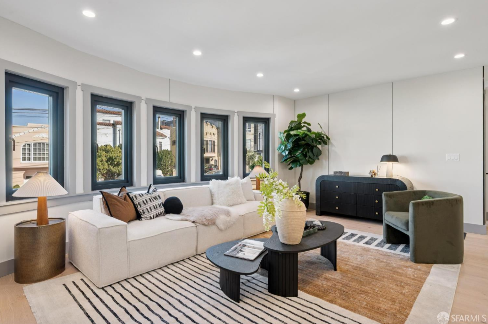 Welcome to a truly rare find in the heart of the Sunset. Spanning three expansive levels and meticulously remodeled living space, this 4-bedroom, 4-bathroom residence redefines coastal urban living. The iconic barrel-front facade opens to a seamless open floor plan, where brand-new dual-pane windows frame an inviting living room anchored by a contemporary electric fireplace. The chef's kitchen is a showstopper, boasting custom cabinetry, top-of-the-line appliances, and a walk-in pantry. The crown jewel is the top-level primary suite, a private sanctuary offering panoramic views of the Pacific Ocean, Golden Gate Park, and the Golden Gate Bridge. The lower level provides ultimate flexibility with a bedroom perfect for au pair or guest use, two full baths, a kitchenette, and a family room that flows directly into a pristine, low-maintenance yard with artificial turf and fresh paving. Located just one block from Golden Gate Park and the vibrant shops of Irving Street, this is the expansive, view-driven home you've been waiting for.